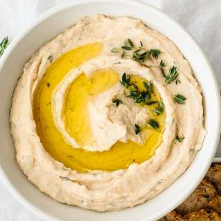 Mashed Beans with Fried Eggs and Fresh Oregano