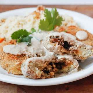 Vegetarian bastilles, kolduny, or vegetarian stuffed potato patties with a mushroom filling