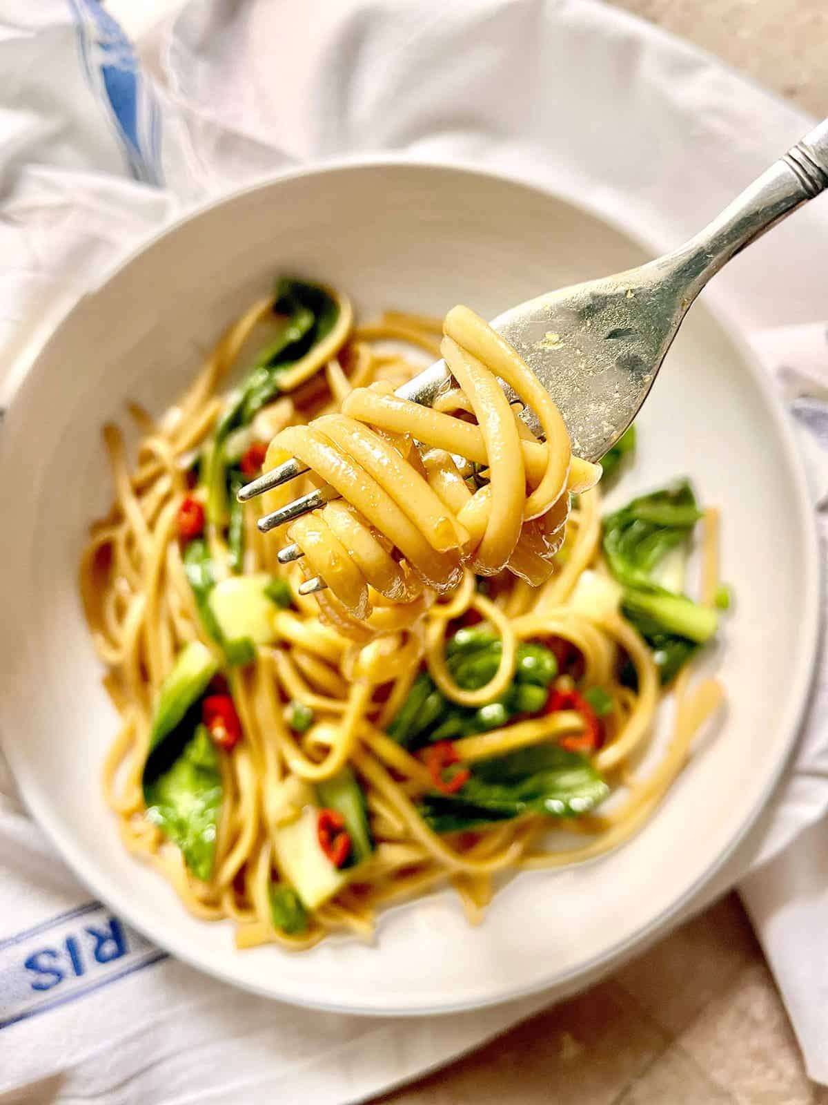 On the dinner table in 15 minutes, this easy Chow Mein recipe with spaghetti noodles with vegetables is a family favorite! The noodles are coated in a deliciously savoury sauce, and ever so moreish- healthier and better than takeout!
