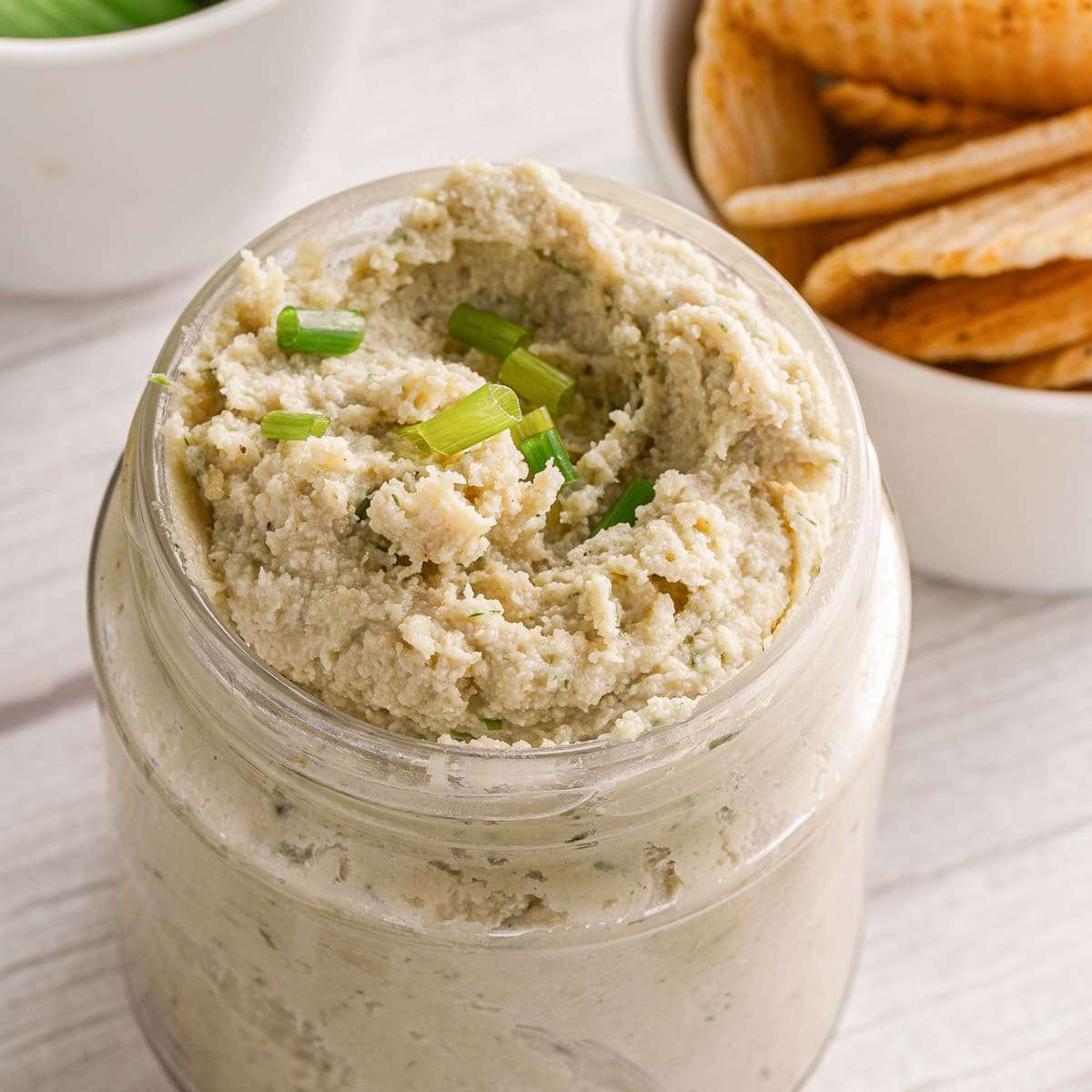 - Serve cashew cheese with tortilla chips, crackers, celery, or carrot sticks. Garnish with fresh chives.