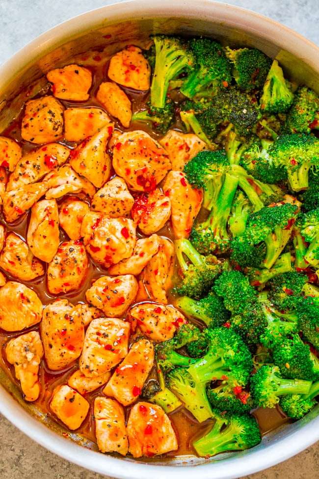 - Uncover skillet, and if desired, add more sauce to either the chicken or broccoli, and serve immediately.