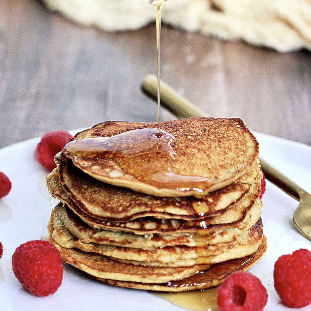 - Top pancakes with your favorite toppings like fresh berries, maple syrup, Greek yogurt or peanut butter.
