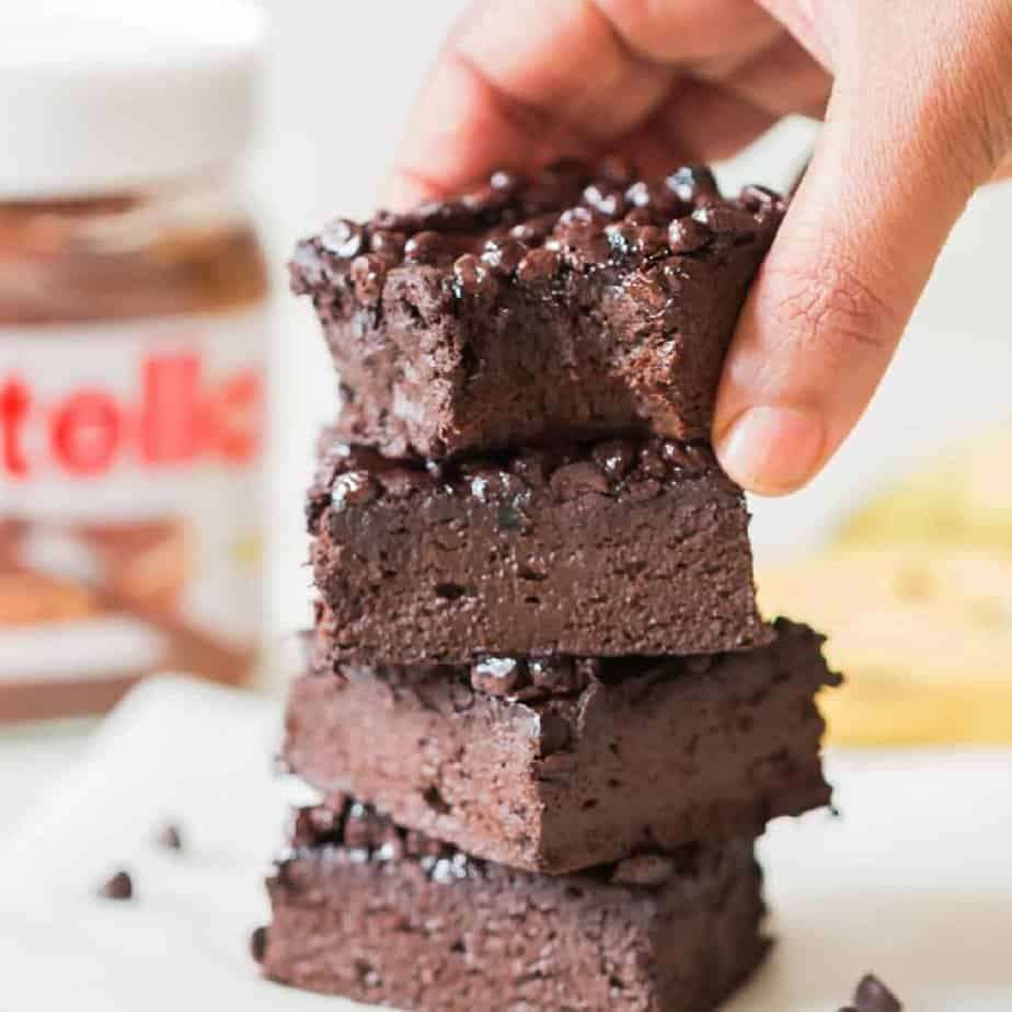 3 ingredient brownies are ultra-moist, rich, gooey, fudgy, chocolatey and very easy to make. There’s no milk, butter, egg or flour used in making these brownies! 3 basic pantry ingredients – banana, Nutella and cocoa powder is all you need!