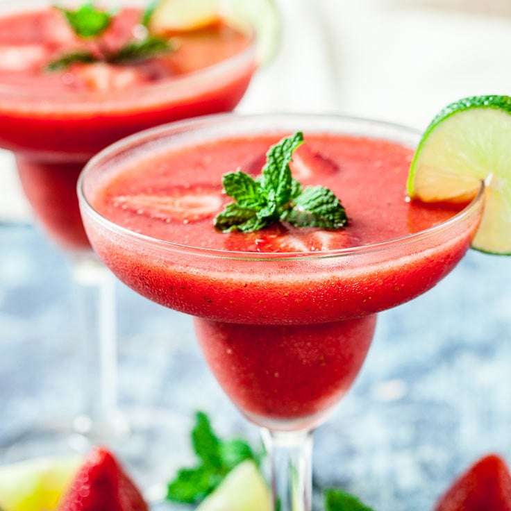 This 4-Ingredient Strawberry Daiquiri is a deliciously cold, refreshing blend of strawberries, lime, rum, and agave. Because it makes use of frozen strawberries, this delicious cocktail is always in season.
