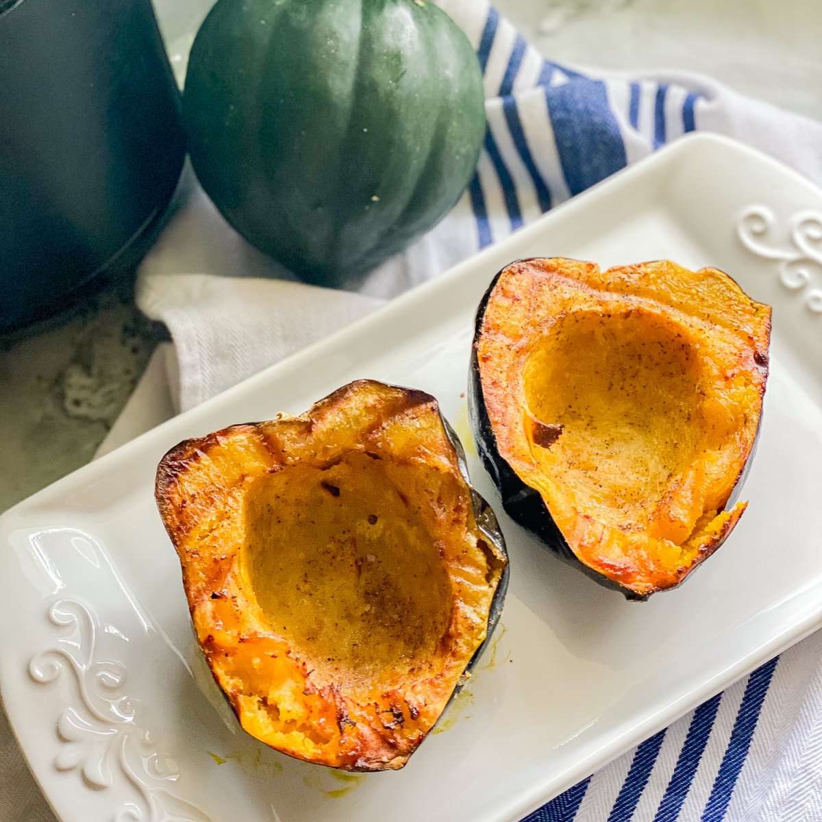 - Oil - You may need to spray a little oil on the acorn squash when you flip it over at the half way point. This will help it crisp up and also not dry out. This is totally optional though.