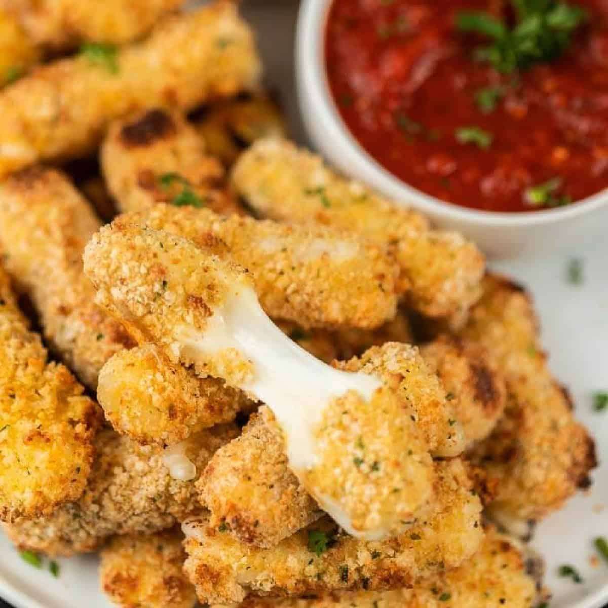 Enjoy air fryer cheese sticks in minutes. The outside is crispy and delicious and the inside is cheesy and gooey. This recipe is delicious.
