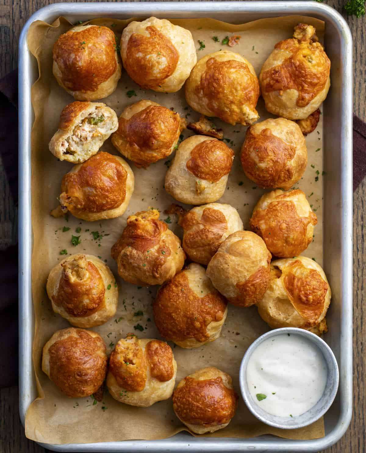 - Use the rest of the cheese (1 cup) to sprinkle on top of the bombs. (You may have to slightly press the cheese into the tops.)