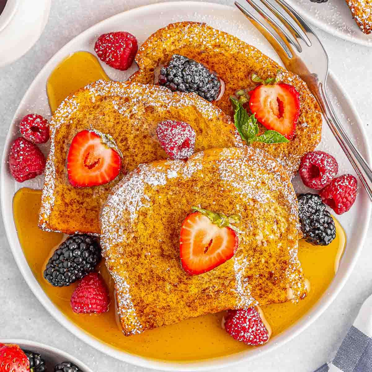 This air fryer French toast recipe is a game-changer for an easy breakfast. Our easy recipe combines thick brioche bread with the classic egg mixture seasoned with cinnamon and nutmeg for a perfectly flavored version of traditional french toast.