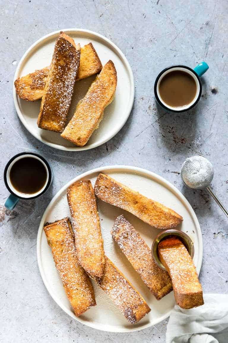 - Dip the bread into the egg (don’t let them sit too long) and coat each side.