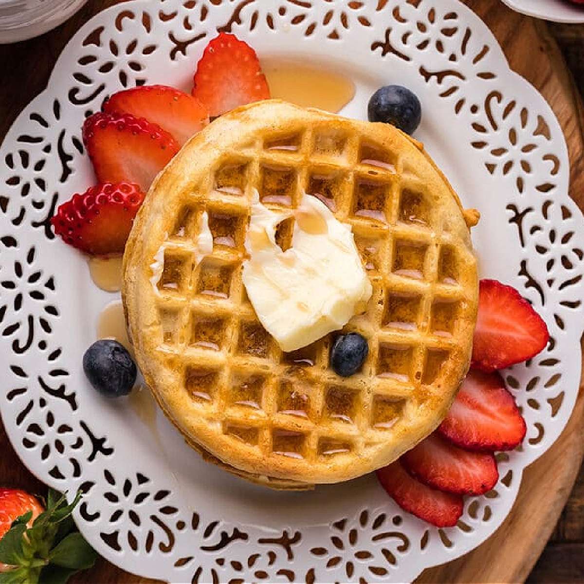 Air fryer frozen waffles come out crispy and golden on the outside and light and fluffy on the inside every time! They're perfect.
