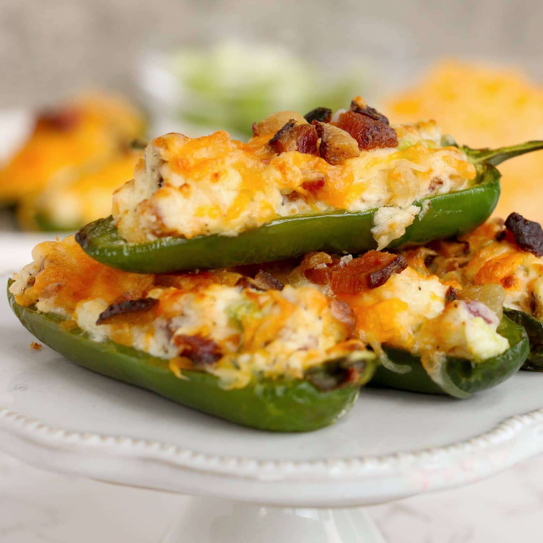 - Stir in 1/2 cup shredded cheese, bacon (reserving about 2 tbsp to top the jalapeño poppers with), and green onions.