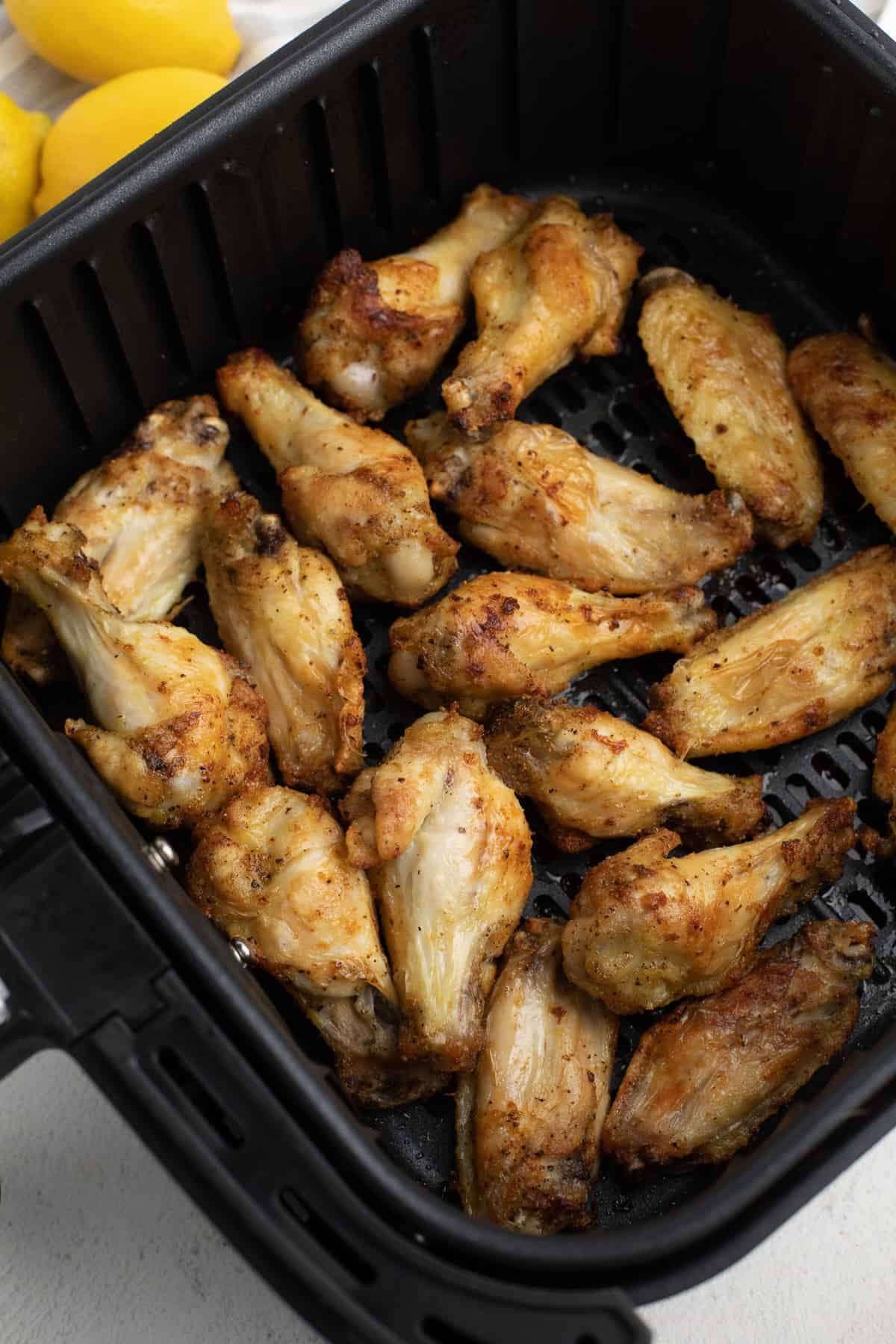- Remove from the Air Fryer and squeeze the fresh lemon juice over the wings before serving.