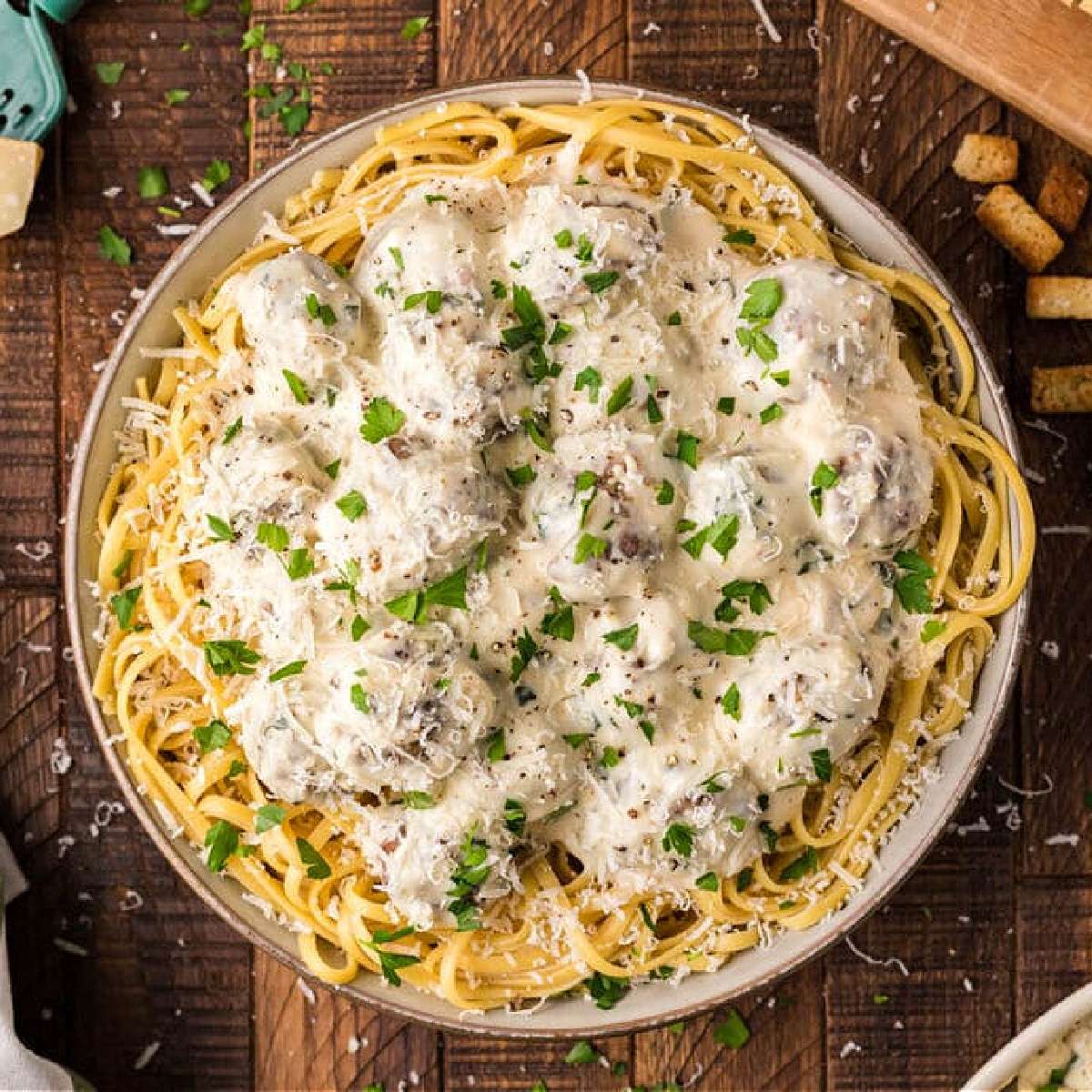 - Plate the linguine. Top with Alfredo meatballs and garnish with fresh chopped parsley. Enjoy every bite.