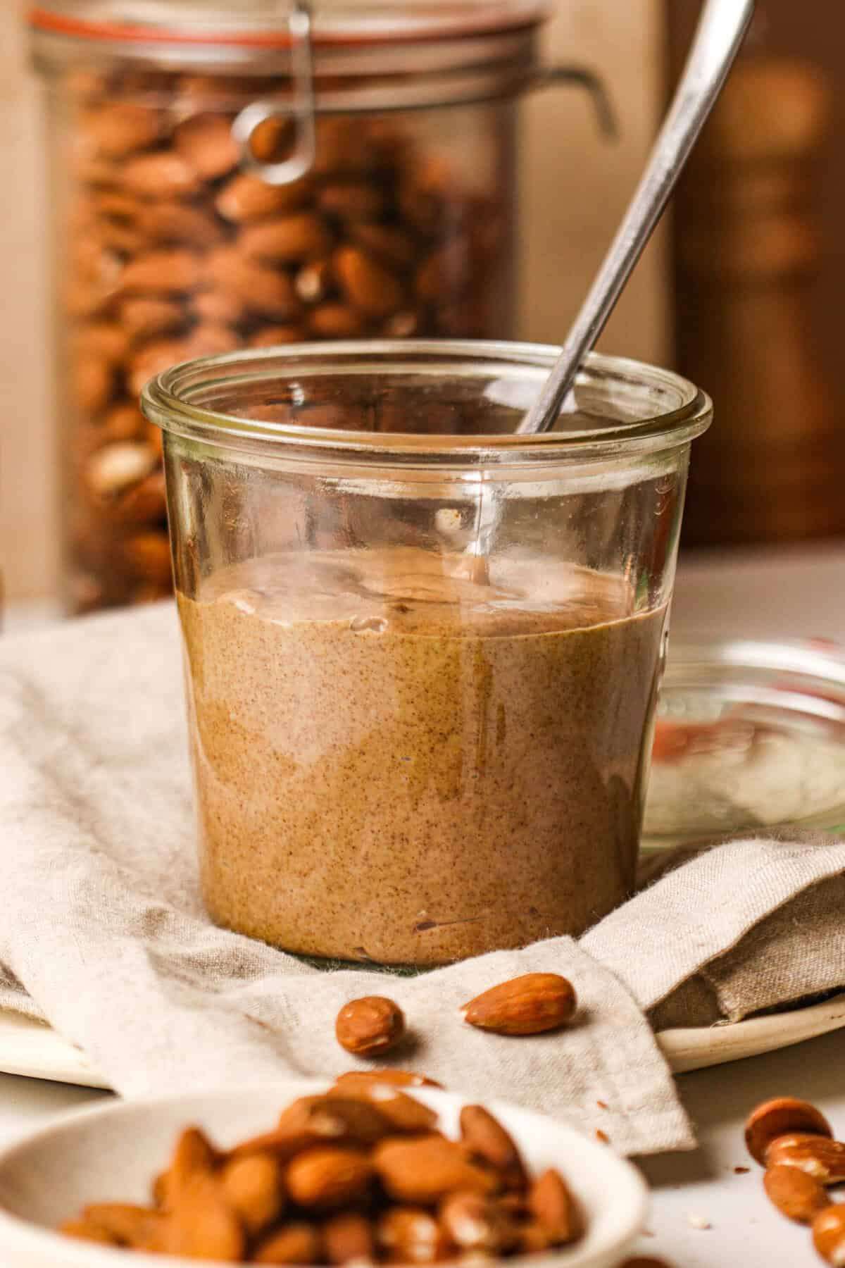 - Once smooth, add the salt and blend briefly to distribute evenly. Transfer the almond butter to a clean jar and seal tightly.