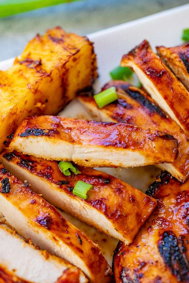 ππΊπ Transports you to Hawaii with every bite of this tender, juicy chicken and the grilled pineapple seals the deal!! EASY, HEALTHY, ready in 10 minutes, and perfect for summer parties, barbecues, and casual weeknight dinners!!