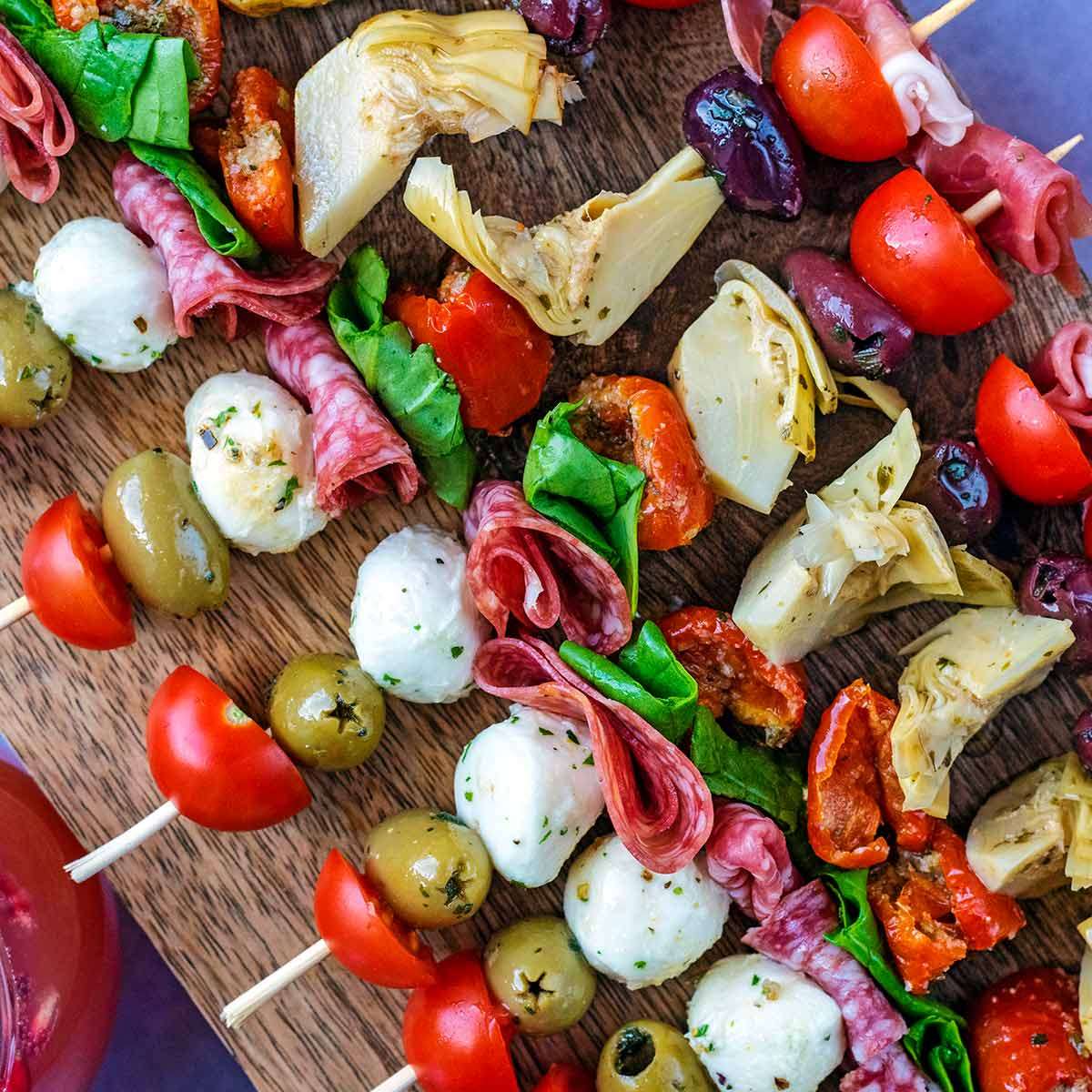 These Antipasto Skewers are the easiest appetiser ever! Packed with Italian flavours, these are perfect for putting together at the last minute.