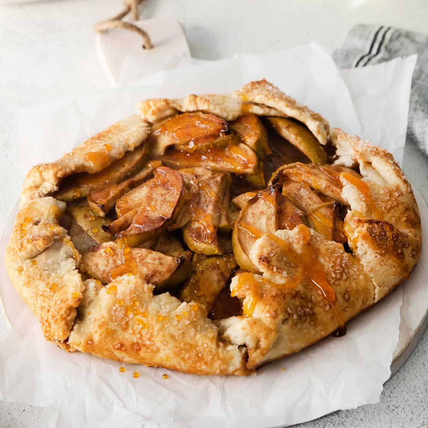 This flaky, buttery Apple Almond Galette is drizzled with a sweet almond toffee glaze. It's full of fall flavors & easier to make than apple pie!