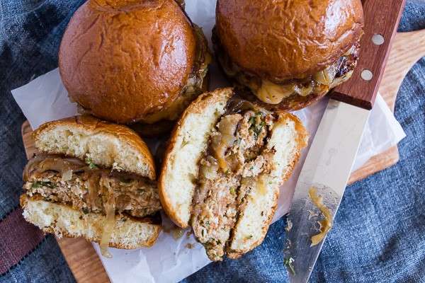 These apple butter onion chicken burgers are the perfect game day and outdoor grilling burgers. They are full of sweet apple butter flavors and pair perfectly with smoked Gouda cheese and homemade apple butter caramelized onions. You’ll