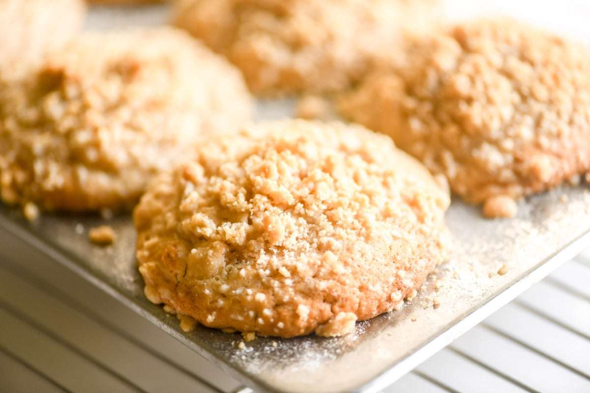- In a large bowl, whisk together the flour, brown sugar, apple pie spice, baking powder, baking soda and salt until everything is fully incorporated. Make sure to blend in any lumps of brown sugar.