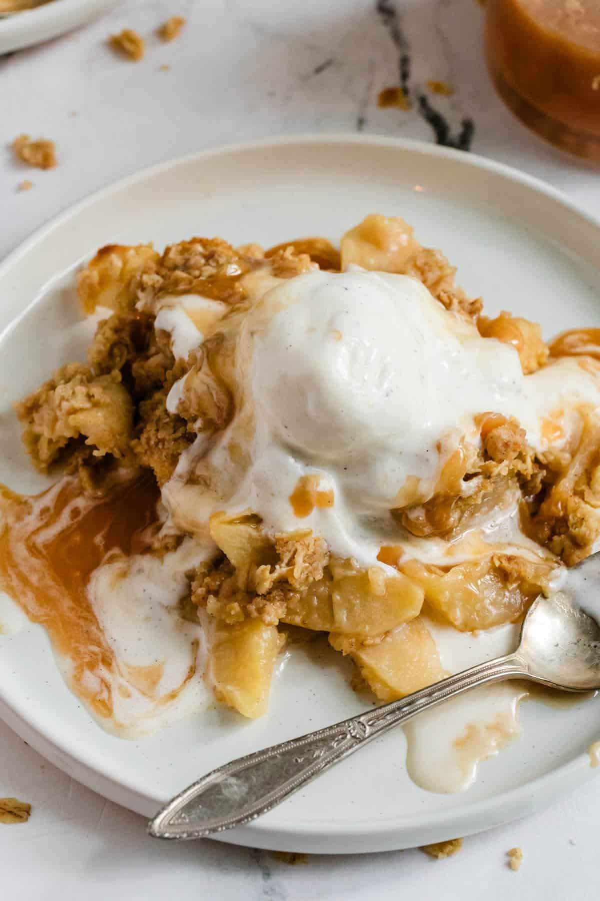 Apple crisp is a classic fall dessert made with buttery oat topping. Serve it with a scoop of vanilla ice cream!