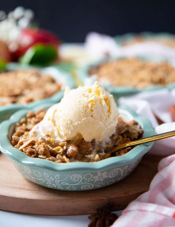 Apple lovers, here's the best Apple Crumble Recipe! Full of all the sweet and tangy flavors of fresh Autumn apples paired with the warming flavors of cinnamon and apple spice, this easy apple crumble will be your go-to comfort dessert.