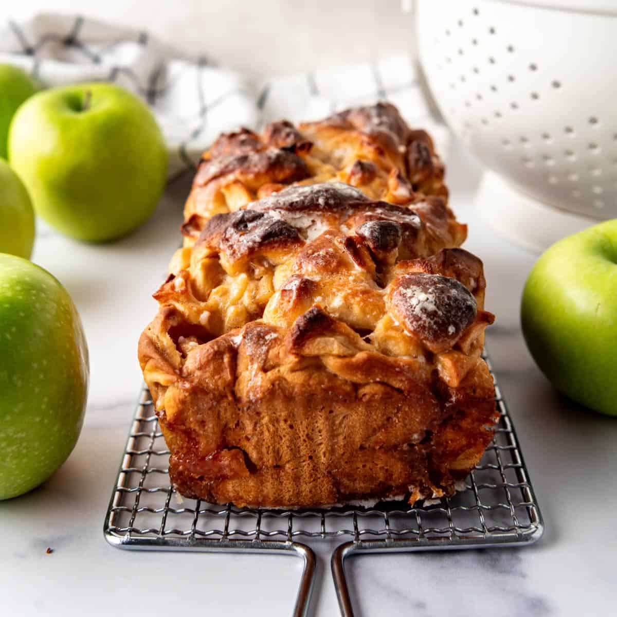 This delicious Apple Fritter Bread is the perfect way to enjoy chunks of juicy apples and a cinnamon sugar mixture baked into a soft, moist bread form. Topped with a sweet glaze, it’s the ultimate comforting treat for fall flavors and apple season. Whether for breakfast or dessert, this recipe will have you savoring every slice!