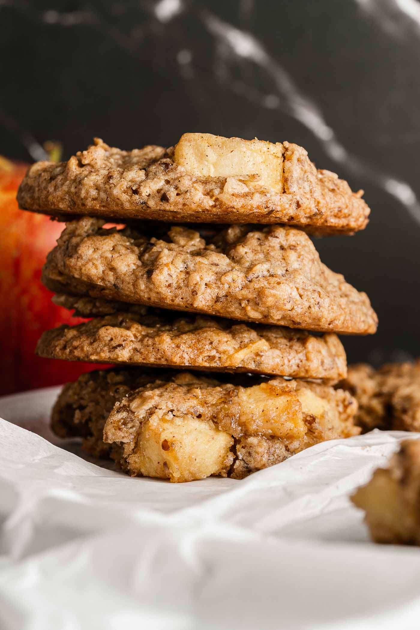 These delicious oatmeal cookies taste just like apple pie! Made with fresh apple, brown sugar and cinnamon, this simple cookie recipe is perfect for the fall. Simple and easy to make and hands down delicious!