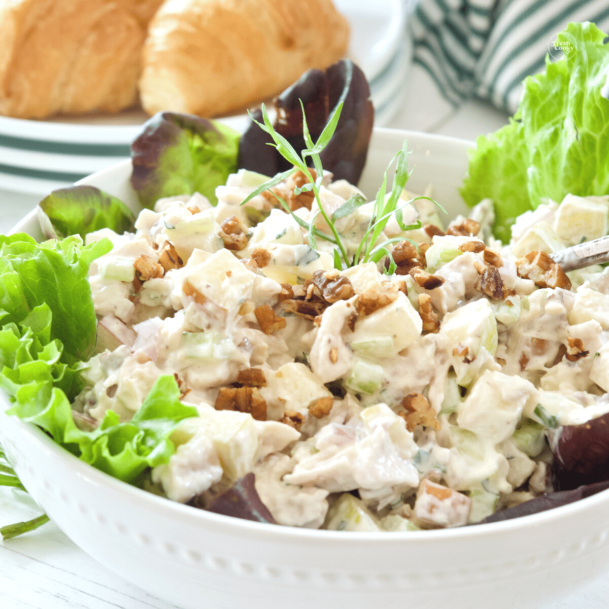 Classic Apple Pecan Chicken salad will become one of your favorite go-to chicken salad recipes. Loaded with must-have crunchies like apples, buttery pecans, shallots, and celery; then lightly dressed in a bright lemon, tarragon mayonnaise dressing.
