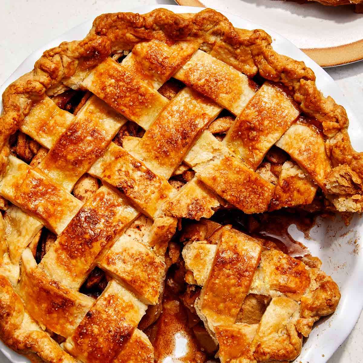 - Once baked, our apple pie is best frozen whole or in individual slices. To freeze, cool pie completely (slice into individual pieces, unless keeping whole) then tightly wrap in a double layer of plastic wrap (wrap each slice individually), followed by a layer of foil for up to 1 month. When ready to thaw, transfer pie to refrigerator (still wrapped) and thaw overnight (about 8 hours). Preheat oven to 350˚F. Unwrap apple pie, loosely cover with foil and bake for about 25 minutes, or until heated through. Alternatively, if thawing single slices, thaw in the refrigerator for about 2 hours. Preheat oven to 350˚F. Unwrap apple pie, loosely cover with foil and bake for about 10 minutes, or until heated through.