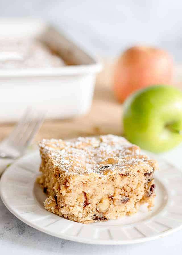 This easy applesauce cake recipe has warm spices, walnuts, and raisins in each decadent bite. Dust with powdered sugar and serve!