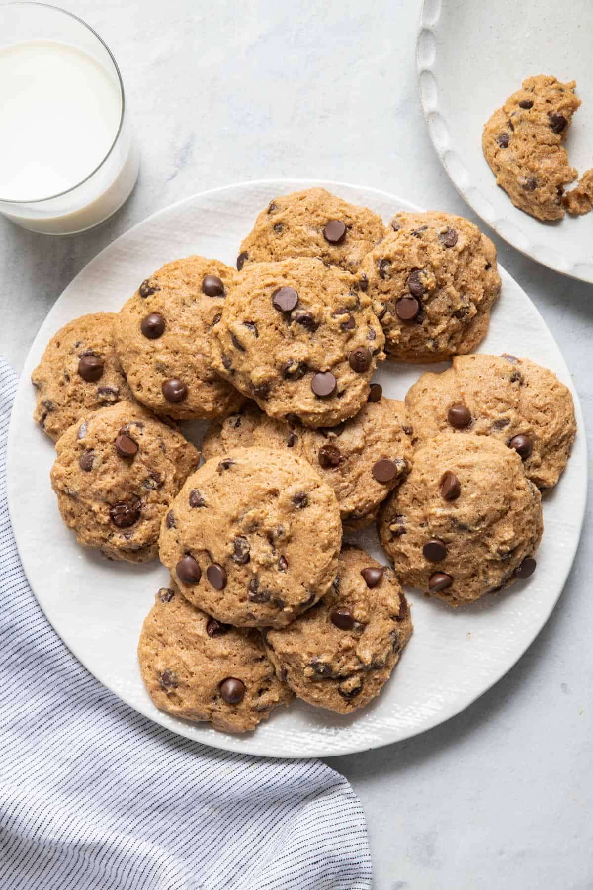 These easy Applesauce Chocolate Chip Cookies are super soft with great taste and texture but less fat than traditional chocolate chip cookies