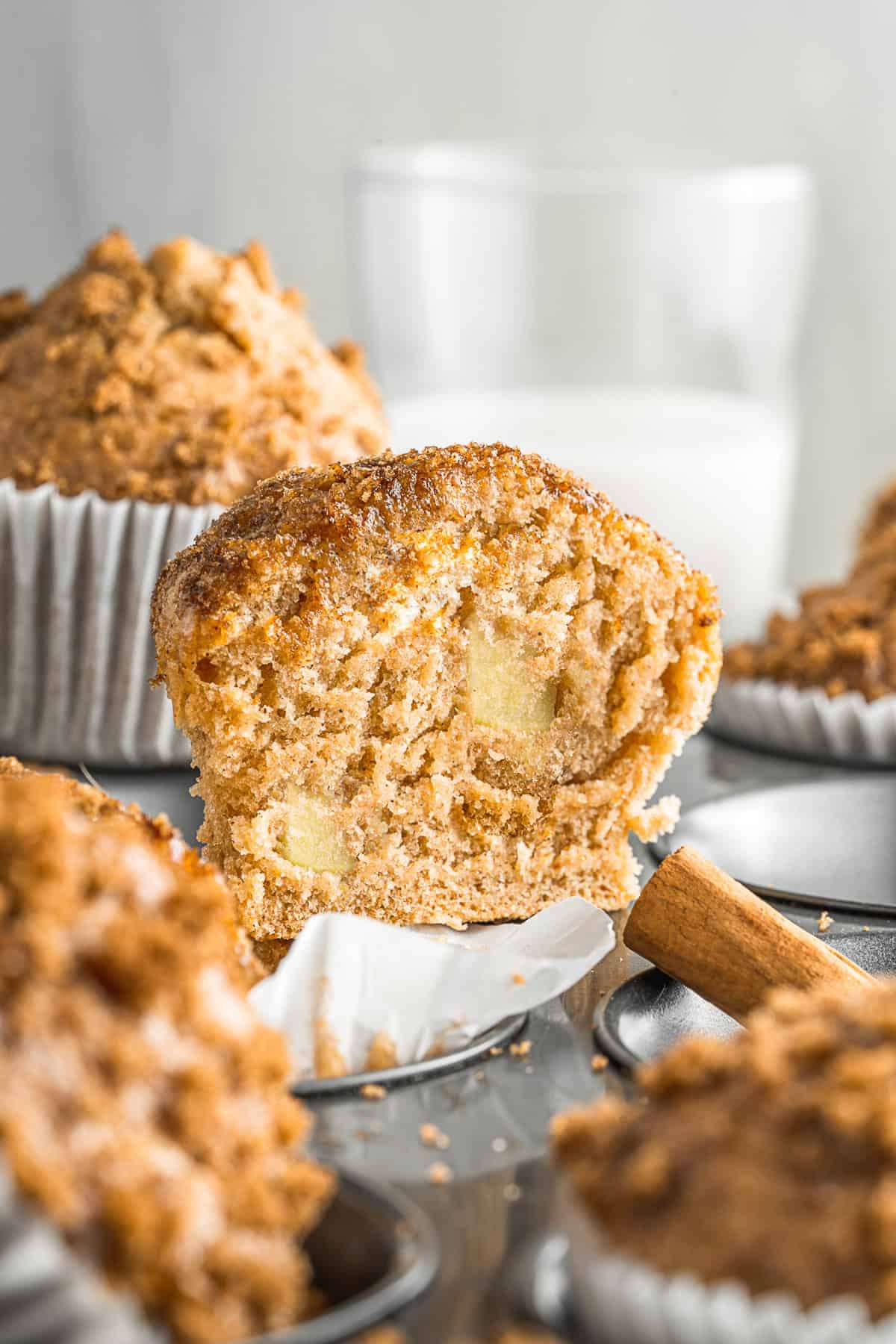 These applesauce muffins make a moist and healthy muffin by using applesauce, fresh apples, sweet brown sugar, and warm spices.