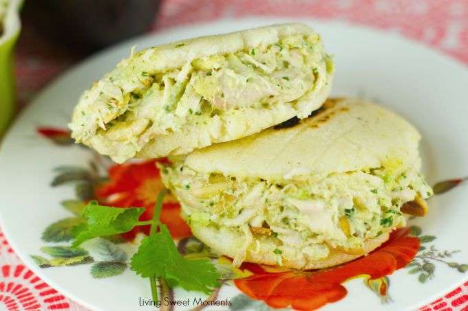 Delicious Venezuelan Arepas filled with the best avocado chicken salad. Perfect for a quick lunch and dinner! Use it in sandwiches, arepas or by itself! Yum