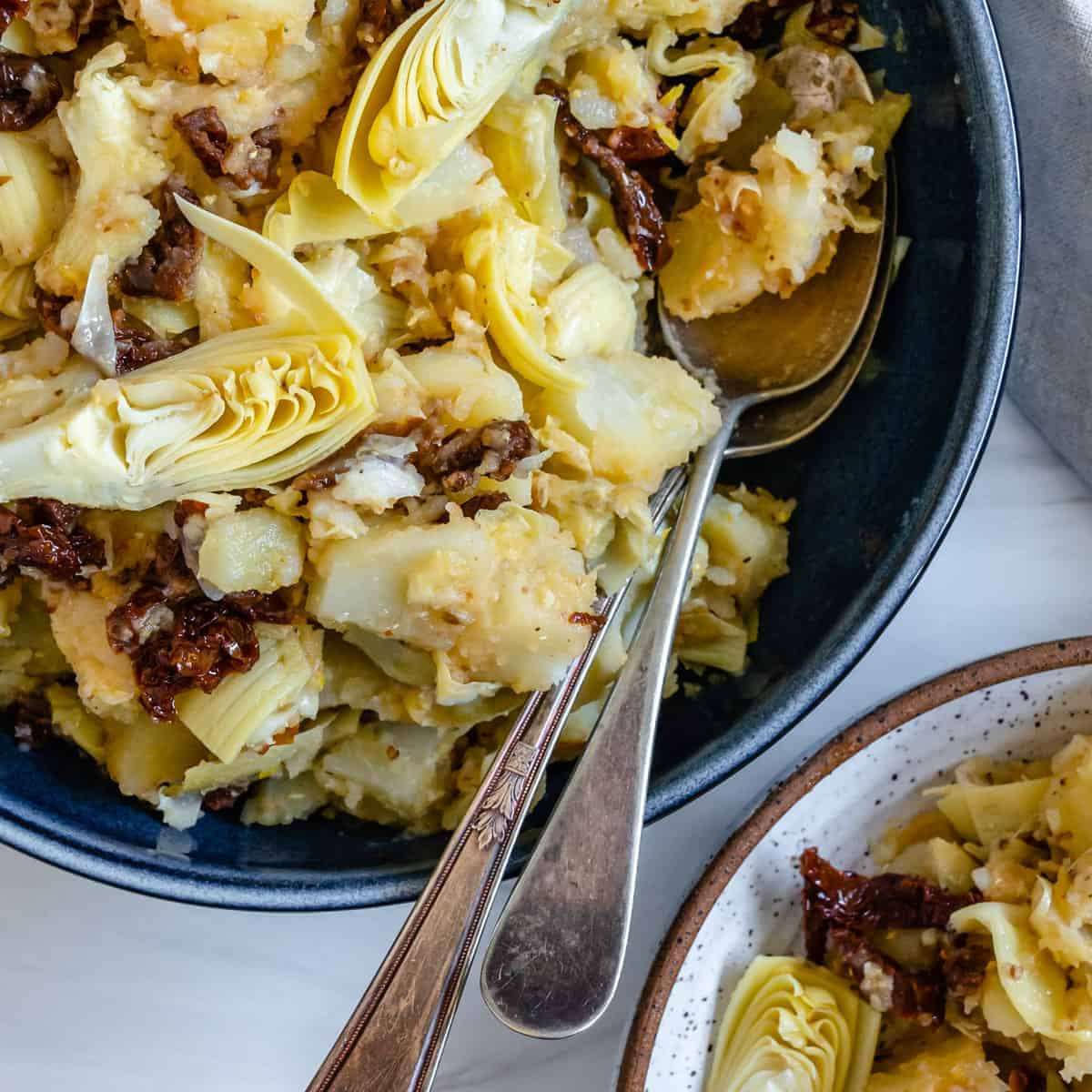 This Artichoke Potato Salad with Lemon Dressing makes the perfect appetizer or side dish for any occasion. A lighter version of the classic potato salad tossed with artichoke hearts and sun-dried tomatoes in a tangy lemon-mustard dressing.