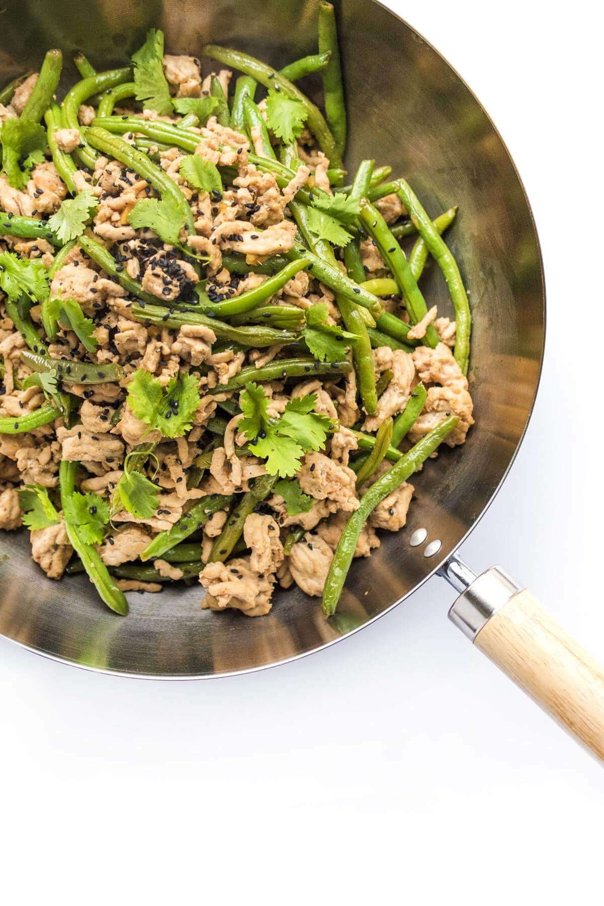 A quick and easy gluten free and healthy Asian stir-fry recipe with green beans, ground turkey, ginger and hoisin. On the table in 30 minutes or less.