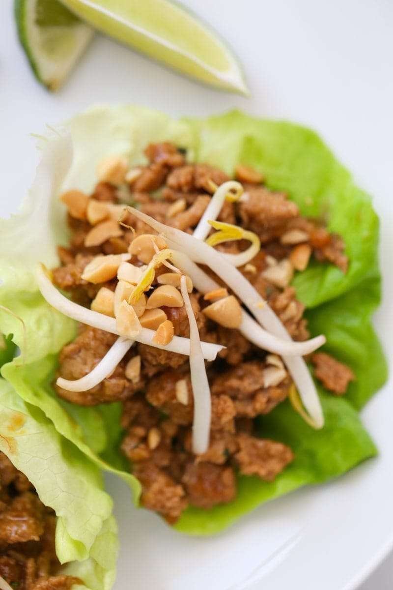 Asian Lettuce Wraps are an easy, healthy, low-carb and delicious meal that is ready to eat in about 15 minutes! Eat plain or top with peanuts, bean sprouts and cilantro!