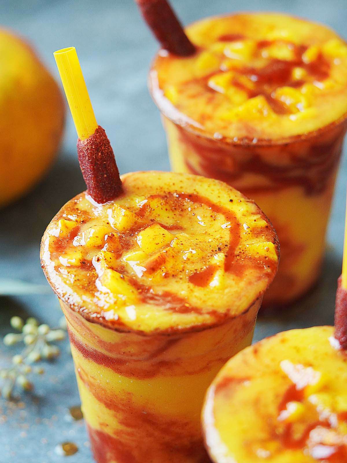 This Mangonada is a treat you definitely need in your life! The main ingredients are mangoes, some chamoy, mango nectar and a little lime. Mangonadas is such a quick and easy fun cold drink to throw together for parties, friends and family, or just a quiet afternoon at home. So delicious, easy, fresh, and fun!