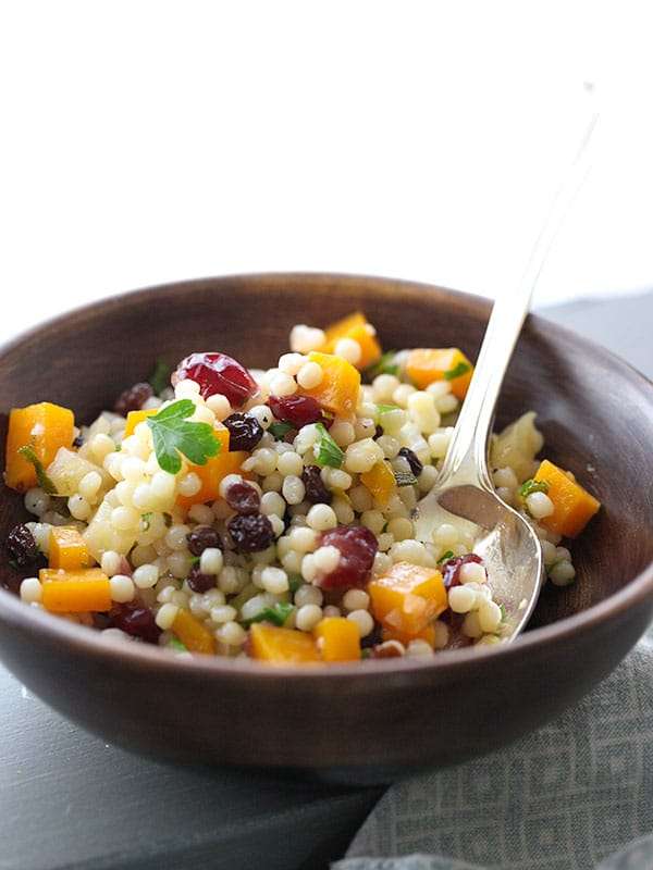 This autumn couscous salad with butternut squash, fennel, dried cranberries, and sage makes a great light and healthy lunch, but would also make a great side dish.