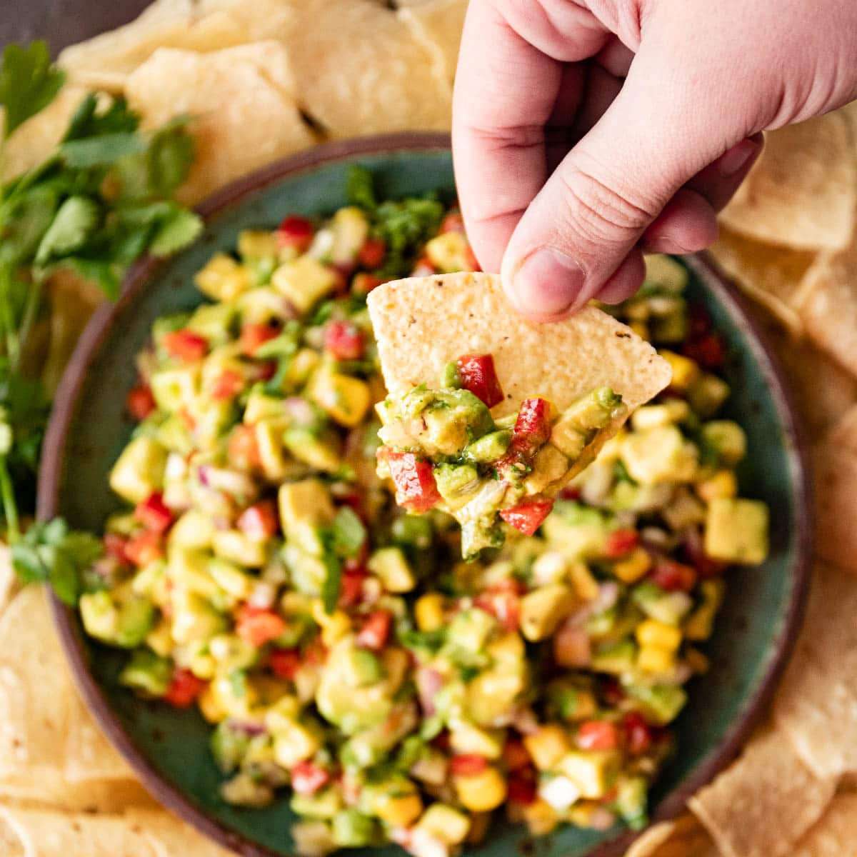 Avocado Salsa is perfectly flavorful and creamy with corn, bell pepper, onion, cilantro, and avocado tossed in a zesty lemon dressing.