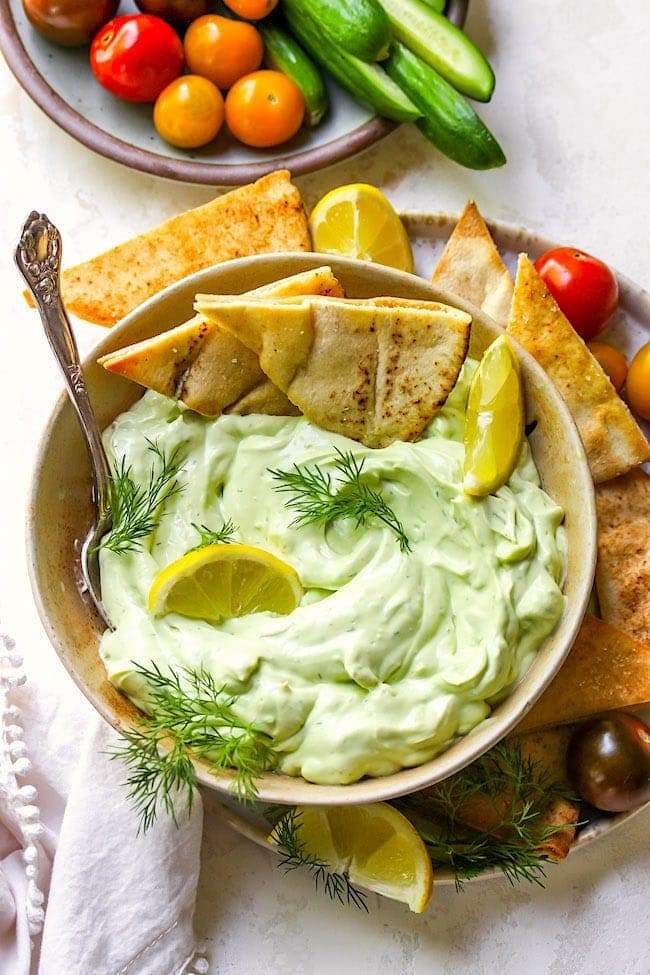 Adding avocado into a classic tzatziki recipe gives it extra creaminess, extra color, and extra flavor! This is a versatile Greek dip that everyone will love.