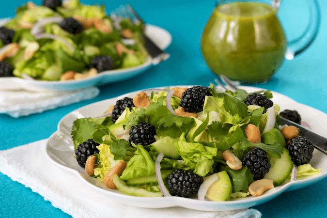 Baby Bok Choy & Blackberry Salad w/ Avocado-Basil Vinaigrette