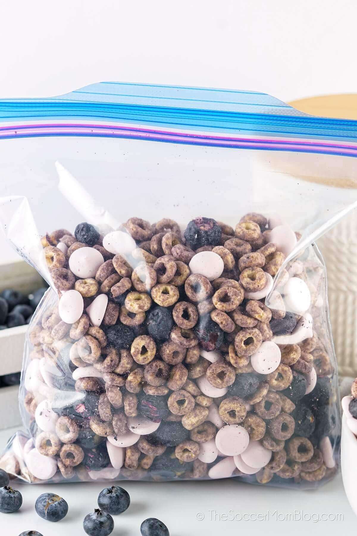 This blueberry flavored baby trail mix is a flavorful snack that you can prepare in minutes with just 3 ingredients!