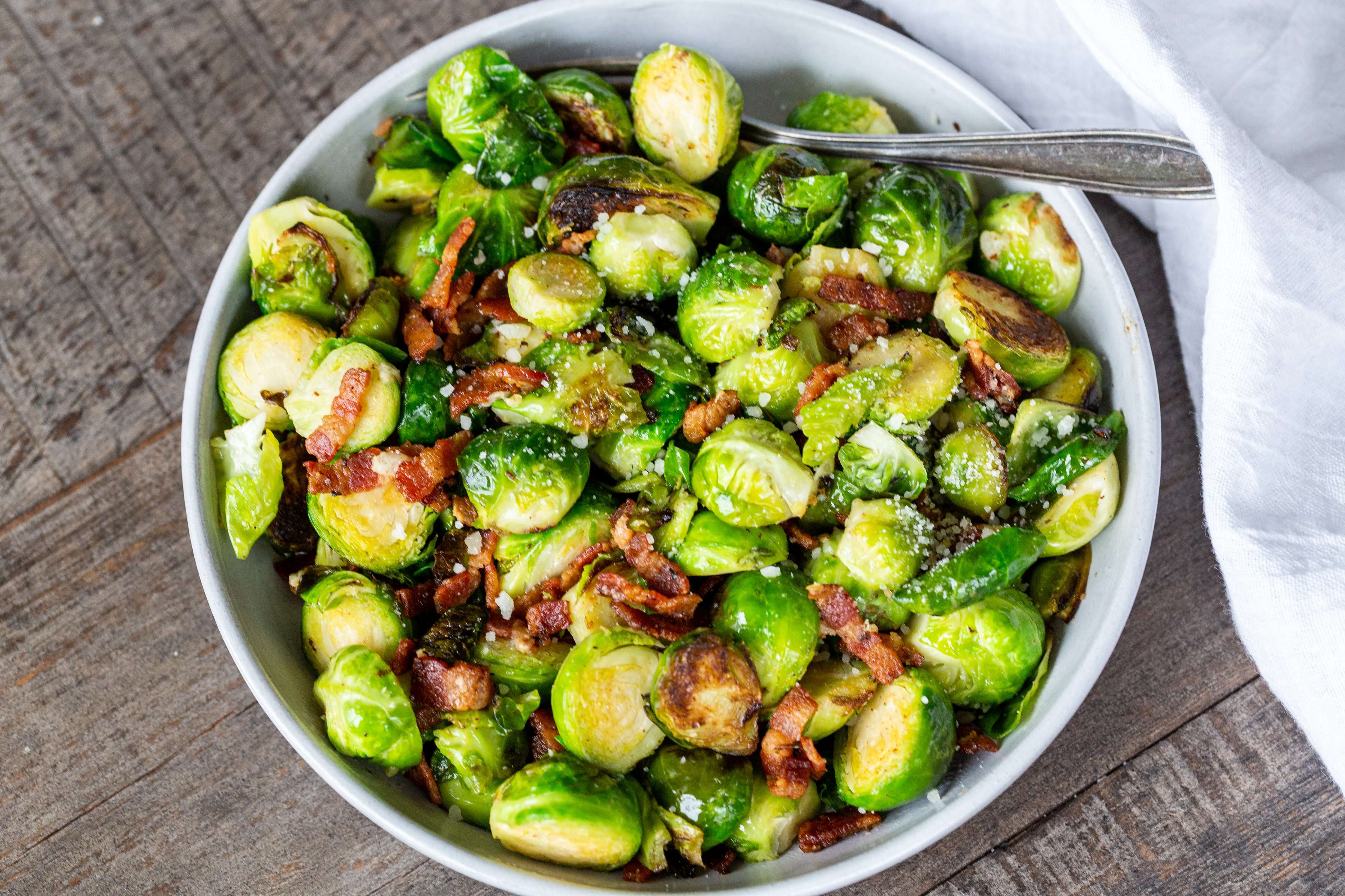 This bacon Brussels sprouts salad recipe features sauteéd sprouts, crispy bacon bits, and sharp Parmesan cheese. It's a warm salad that's absolutely binge-worthy!