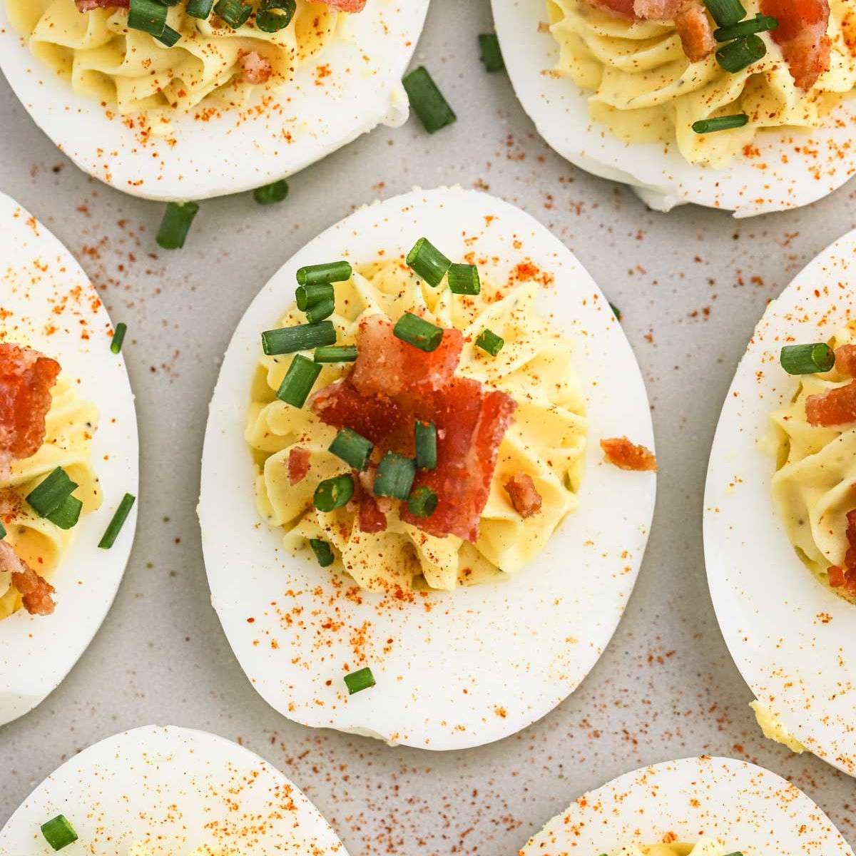 Make these Bacon Deviled Eggs for the ultimate twist on a classic recipe. The staple ingredients are combined and topped with crispy bacon.