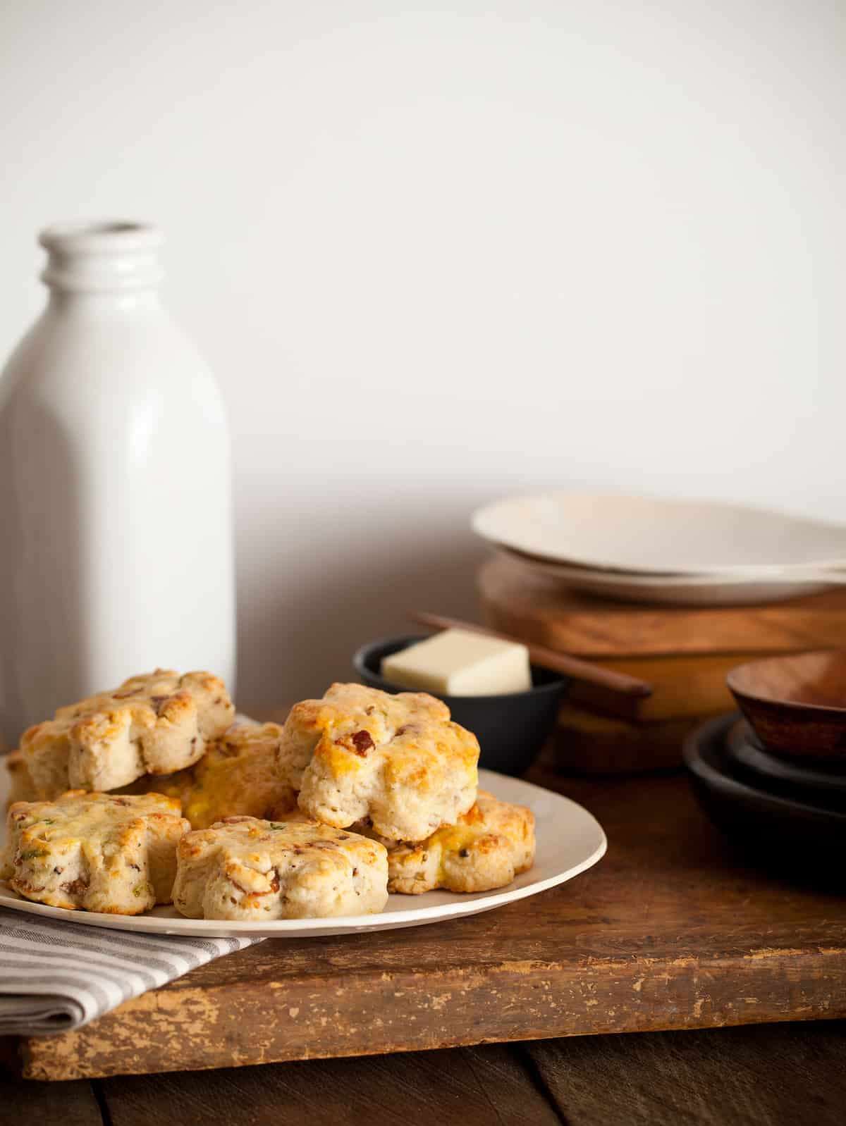 - Once chilled, flatten the disc to about ½ inch thick and cut the disc into circles using a 3 inch circle cutter (or a fluted cutter) and place the scones onto a parchment lined baking sheet.