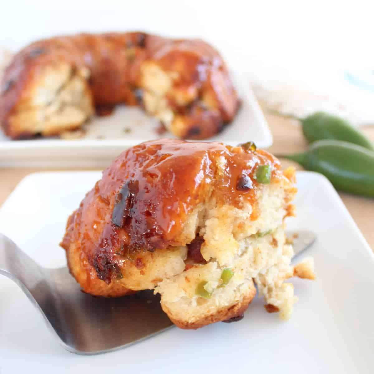 Monkey Bread is given a salty, sweet, spicy southern twist with the addition of bacon, honey and jalapeños in this delicious breakfast recipe!