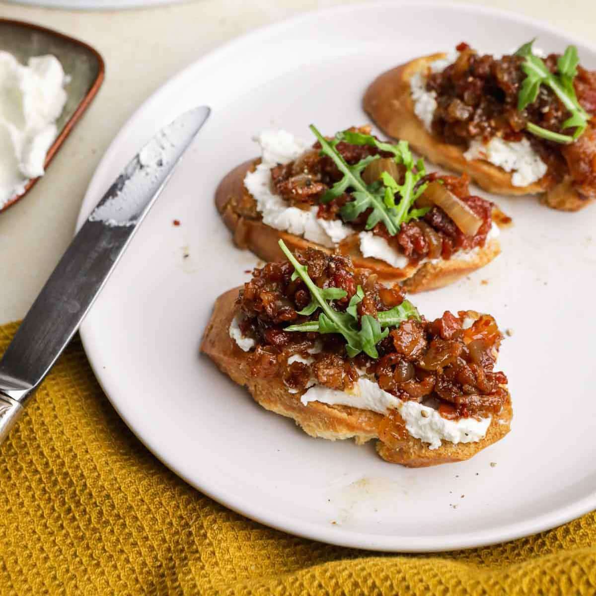 Homemade Bacon Jam is easy to make with bacon, onions, brown sugar, and apple juice simmered for addicting sweet savory spreadable goodness.