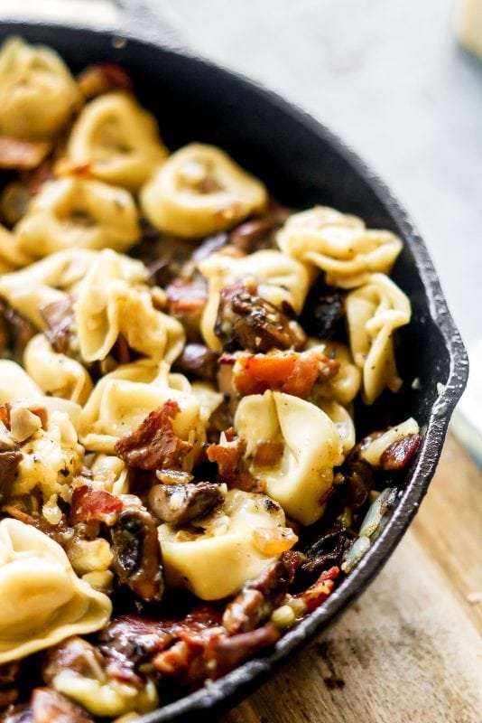 Bacon Mushroom Tortellini is so tasty, hearty, and delicious with only seven simple ingredients! The best part is that it comes together in just 25 minutes.