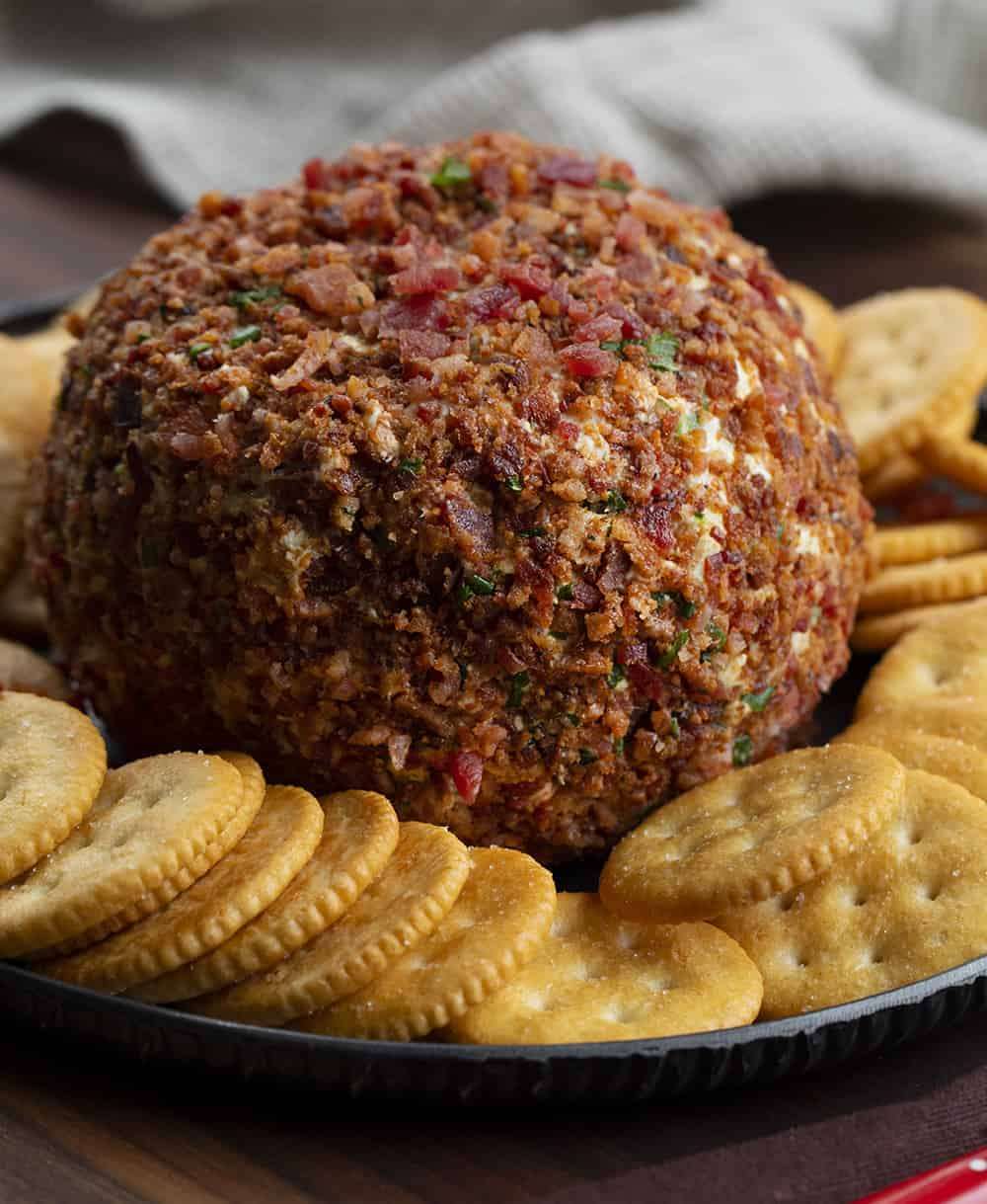 This Bacon Ranch Jalapeno Cheeseball is a creamy ball of cheese, onions, jalapeno peppers, ranch seasoning mix, and bacon that is a flavorful dip to share.