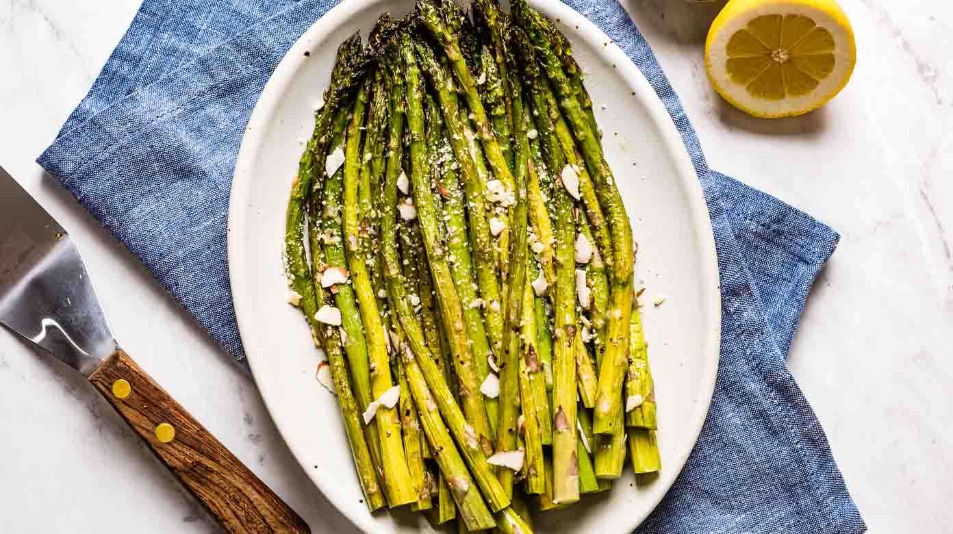 Learn how to bake asparagus in the oven for the most delicious, healthy, and easy vegetable side dish you can make. Whether it is the pencil thin variety or the thicker asparagus, my foolproof roasted asparagus recipe will deliver the perfect results every time.